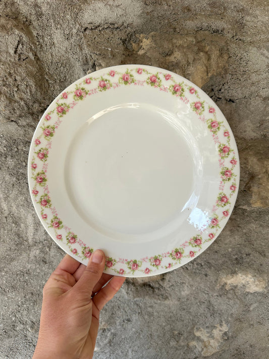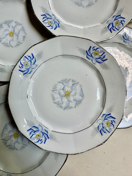 9 assiettes à dessert et son plat assorti en faience de Salins