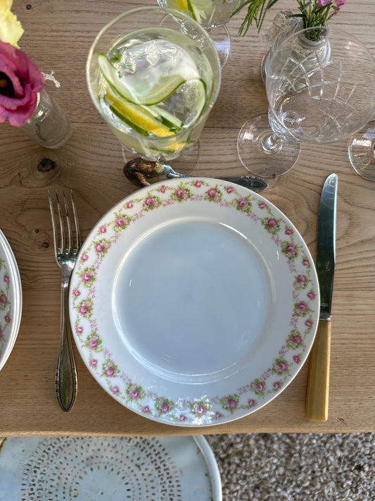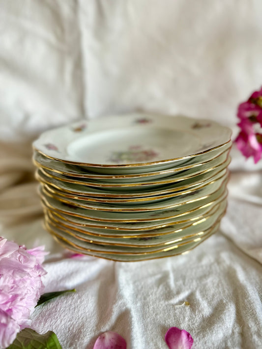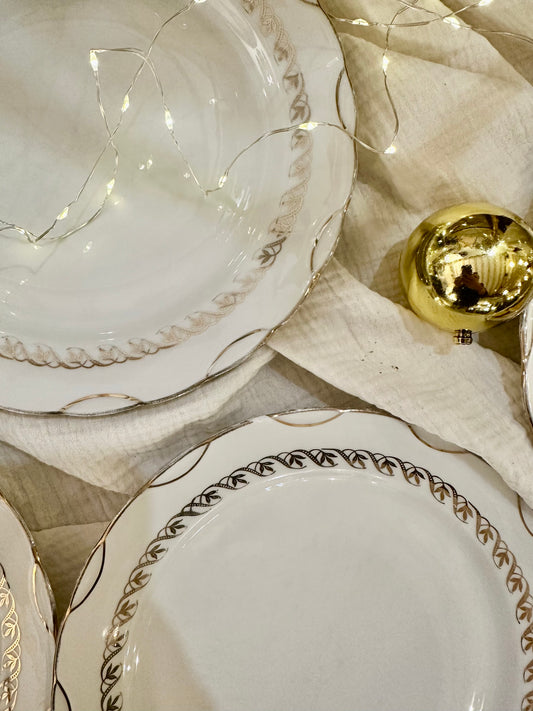 7 Assiettes plates blanches et dorées en porcelaine de Limoges
