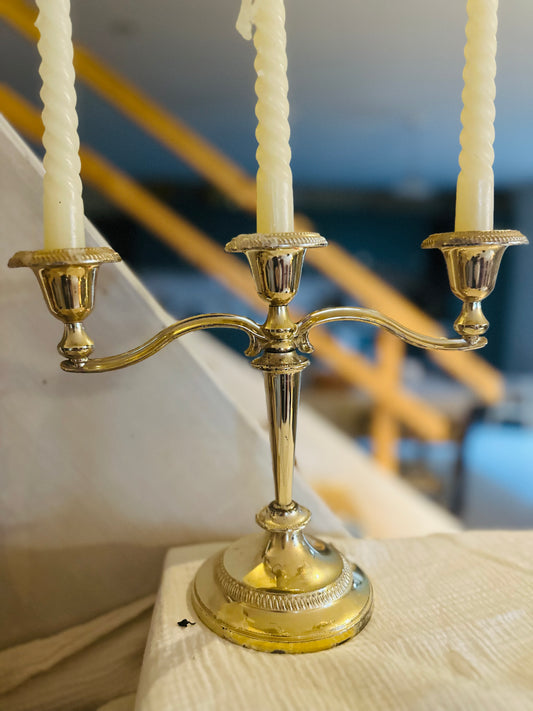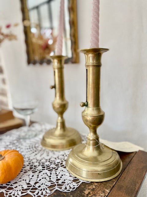 Paire de bougeoirs en laiton doré avec bouton poissoir