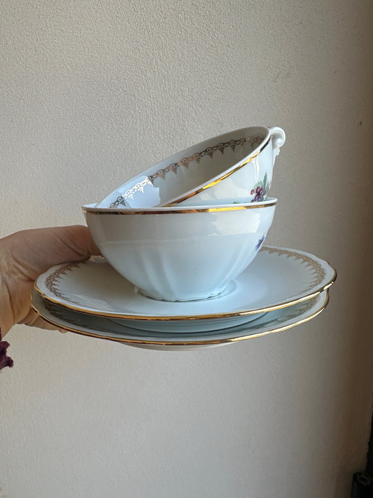 Ensemble de 2 tasses et 2 soucoupes assorties en porcelaine